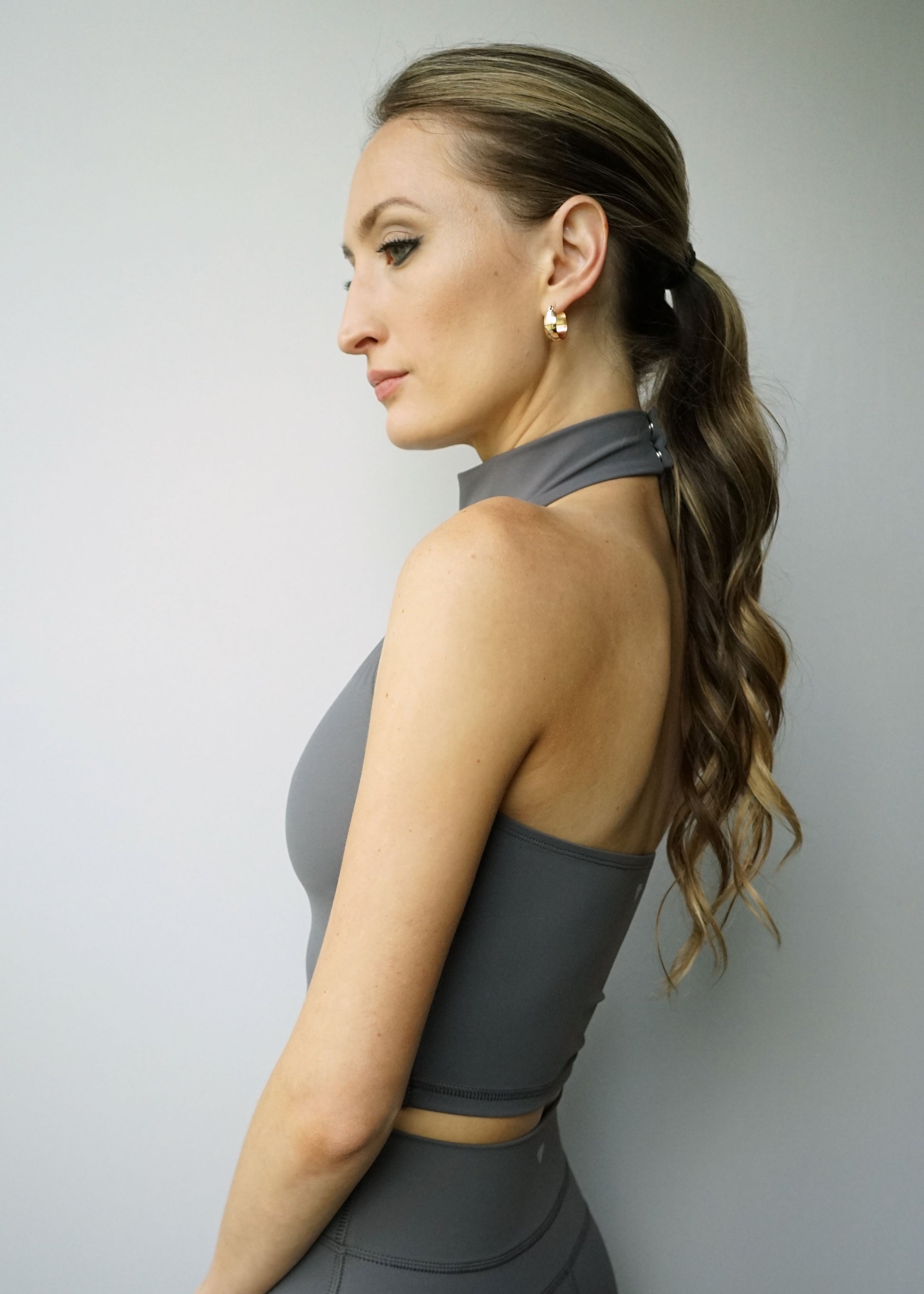 The En L' Air Halter Crop Top gives any outfit an instant boost of sophistication. Featuring a built in shelf bra for optimal comfort and support. Made in the USA with our peachy soft En L' Air fabric, this halter top flatters with sculpting and moisture wicking properties. Feel supported and empowered in the En L' Air Halter Crop Top.